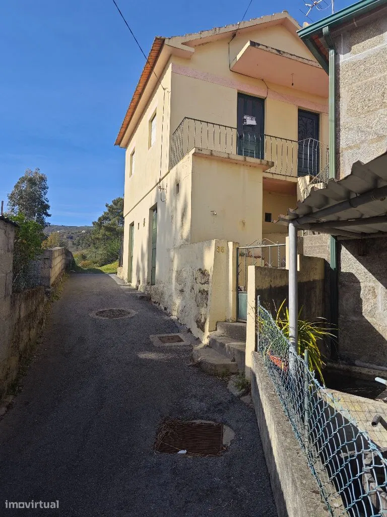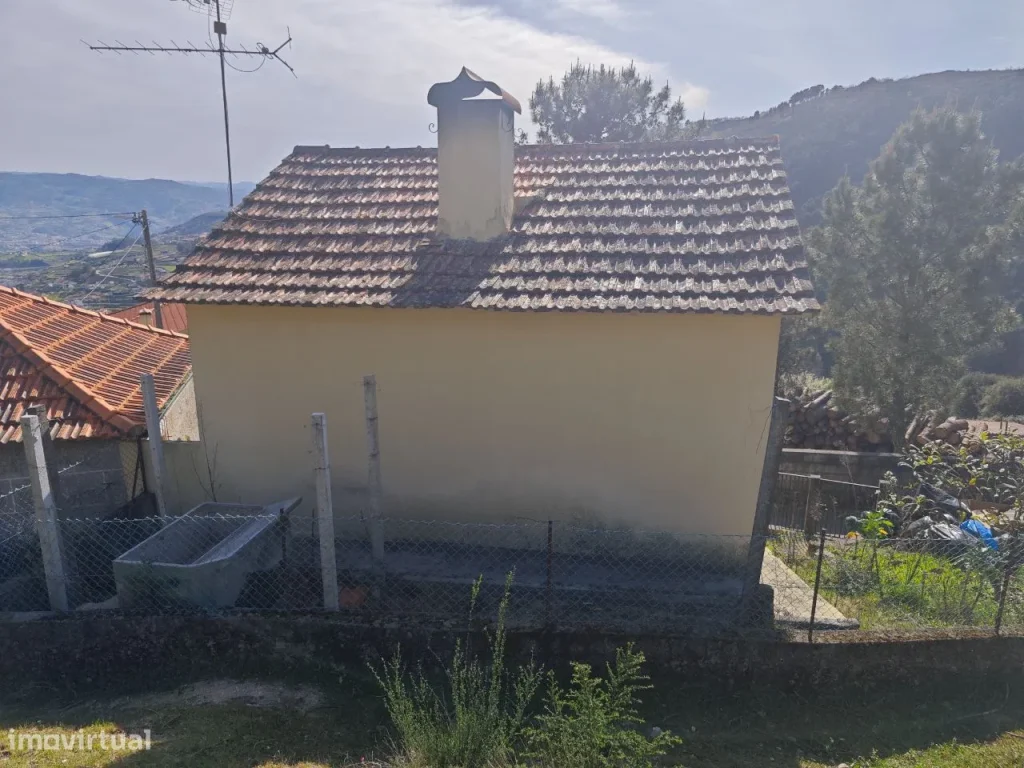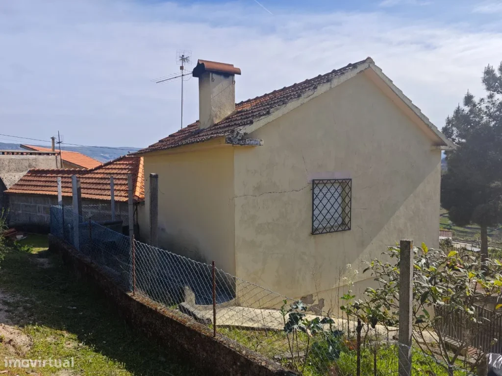 Casinha com sala, dois quartos, cozinha, casa de banho, dois arrumos e um pequeno terreno.